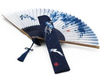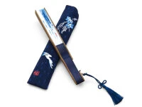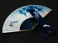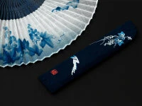 Der Künstler Mutsumiho Taisei hat die Vorlage für dieses schöne Motiv geliefert. Der schöne, elegante japanische Faltfächer symbolisiert die Kühle des Abends, die frische Brise, die man sich nach einem heißen Tag ersehnt. Die Steglänge misst 21 cm, offen ist das asiatische Schmuckstück 38,5 cm breit. Japanische Baumwolle, Leinen und Bambus sorgen für frischen Wind.