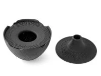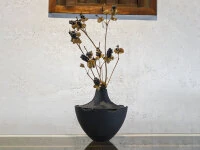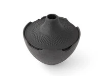 Nobuho Miya ist ein hochdekorierter Designer und gleichzeitig Meister für Nambu Tekki, die traditionelle Kunst hervorragende Gusseisen Produkte herzustellen. Sein Kochgeschirr ist weltweit unter Kennern bekannt und geschätzt, seine künstlerischen Entwürfe für Vasen, Schalen und Figuren stehen in vielen Ausstellungen rund um den Globus. Diese Vase ist ein für Miya typisches Werk. Denn Multifunktion hat er sehr oft in eigenem Stil umgesetzt. Die Vase besteht aus drei Elementen und kann so für unterschiedlichste Deko-Ideen eingesetzt werden. Der obere Durchmesser kann von ungefähr 14 cm auf ca. 6 cm und sogar 2,5 cm variiert werden. So dass die Vase selbst der einzelnen Blume oder dem schönen Ast den richtigen Halt gibt. Innen ist die Vase lackiert, um sie abzudichten und vor Rost zu schützen. Für den Rest ist die stolze Besitzerin oder der Herr des Designobjektes zuständig.